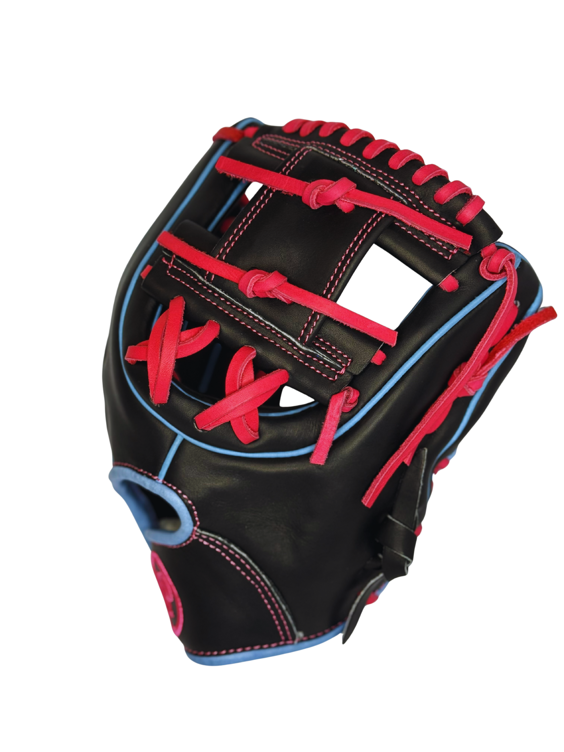 The Raven is a bold, high-performance glove crafted from premium kip leather for unmatched softness, durability, and quick break-in. Its sleek black base is brought to life with striking pink and teal accents, creating a look that commands attention on the field. Designed for players who demand both style and performance, The Raven delivers a lightweight feel, responsive control, and a professional-level finish that’s built to last.